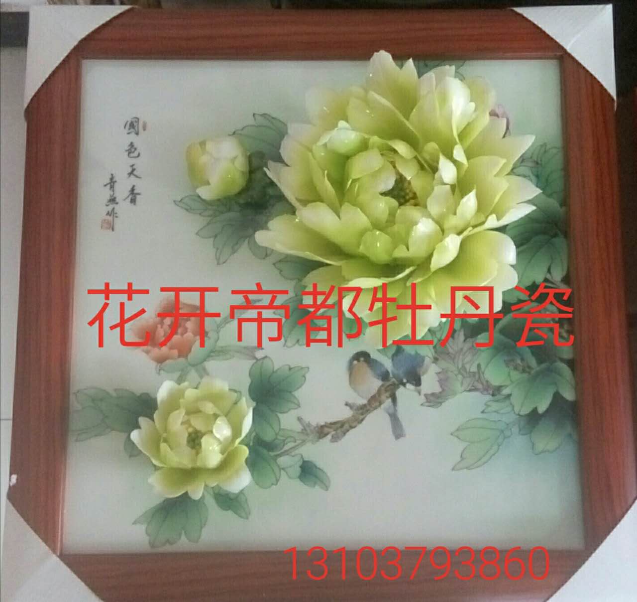 產(chǎn)品系列主要包括:牡丹瓷花盤、牡丹瓷屏風(fēng)、牡丹瓷盆景、牡丹瓷壁掛和牡丹瓷鼎,形式多種多樣!每一件作品都是藝術(shù)的結(jié)晶,花、枝、葉均是手工捏制,造型逼真生動(dòng)。
