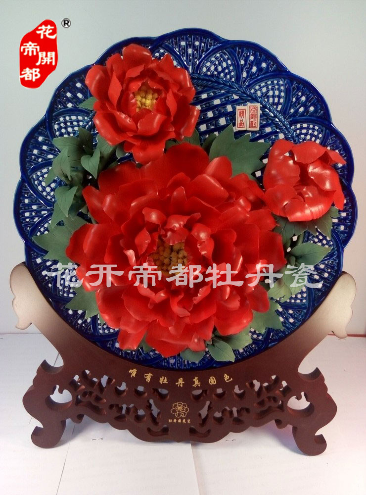 產品系列主要包括:牡丹瓷花盤、牡丹瓷屏風、牡丹瓷盆景、牡丹瓷壁掛和牡丹瓷鼎,形式多種多樣!每一件作品都是藝術的結晶,花、枝、葉均是手工捏制,造型逼真生動。