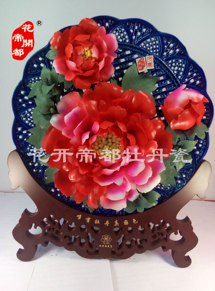 產(chǎn)品系列主要包括:牡丹瓷花盤、牡丹瓷屏風(fēng)、牡丹瓷盆景、牡丹瓷壁掛和牡丹瓷鼎,形式多種多樣!每一件作品都是藝術(shù)的結(jié)晶,花、枝、葉均是手工捏制,造型逼真生動。
