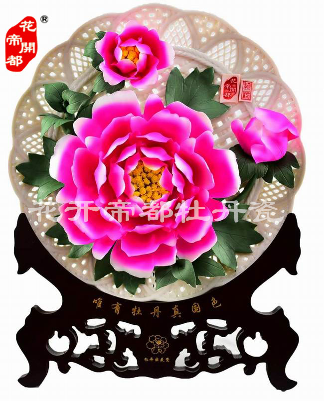 產(chǎn)品系列主要包括:牡丹瓷花盤、牡丹瓷屏風(fēng)、牡丹瓷盆景、牡丹瓷壁掛和牡丹瓷鼎,形式多種多樣!每一件作品都是藝術(shù)的結(jié)晶,花、枝、葉均是手工捏制,造型逼真生動。