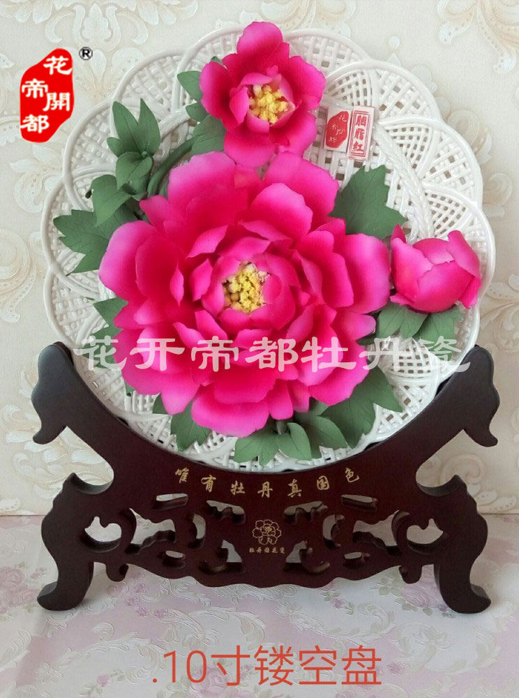 產(chǎn)品系列主要包括:牡丹瓷花盤、牡丹瓷屏風(fēng)、牡丹瓷盆景、牡丹瓷壁掛和牡丹瓷鼎,形式多種多樣!每一件作品都是藝術(shù)的結(jié)晶,花、枝、葉均是手工捏制,造型逼真生動。